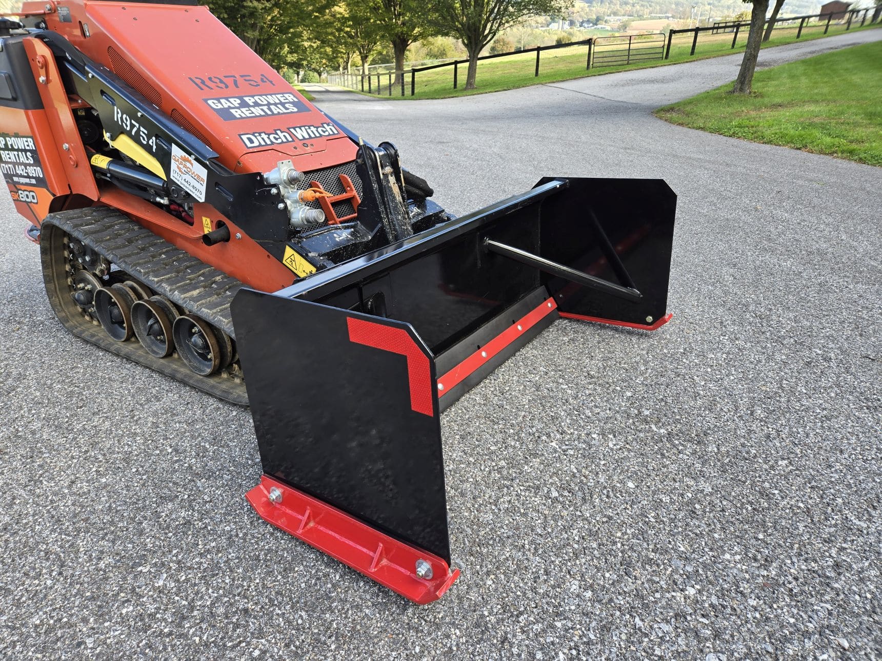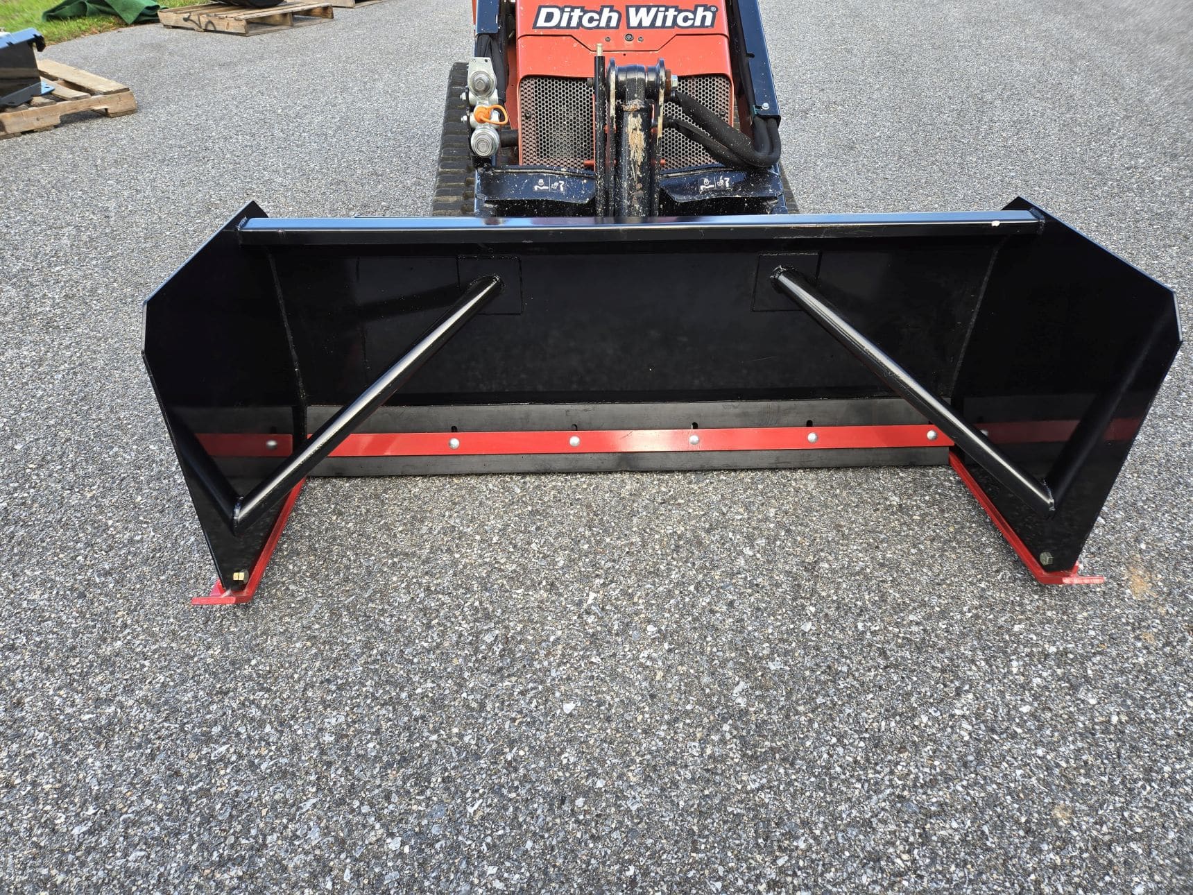 The mini snow pushers come in two widths 60” and 72”. The pusher has a 23” high moldboard, ½” thick slide shoes and adjustable rubber cutting edge. Mini pushers are great for plowing small parking lots and large driveways. The total welded design makes the strong to give you years of service. All our mini skid steer attachments are available in the Toro-Dingo style mount or the Bobcat MT mount.